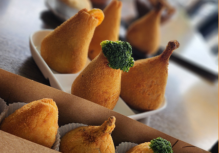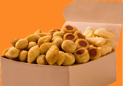 Sabores: coxinha de frango, enroladinho de presunto e queijo, salsicha empanada, croquete, bolovo e mais.